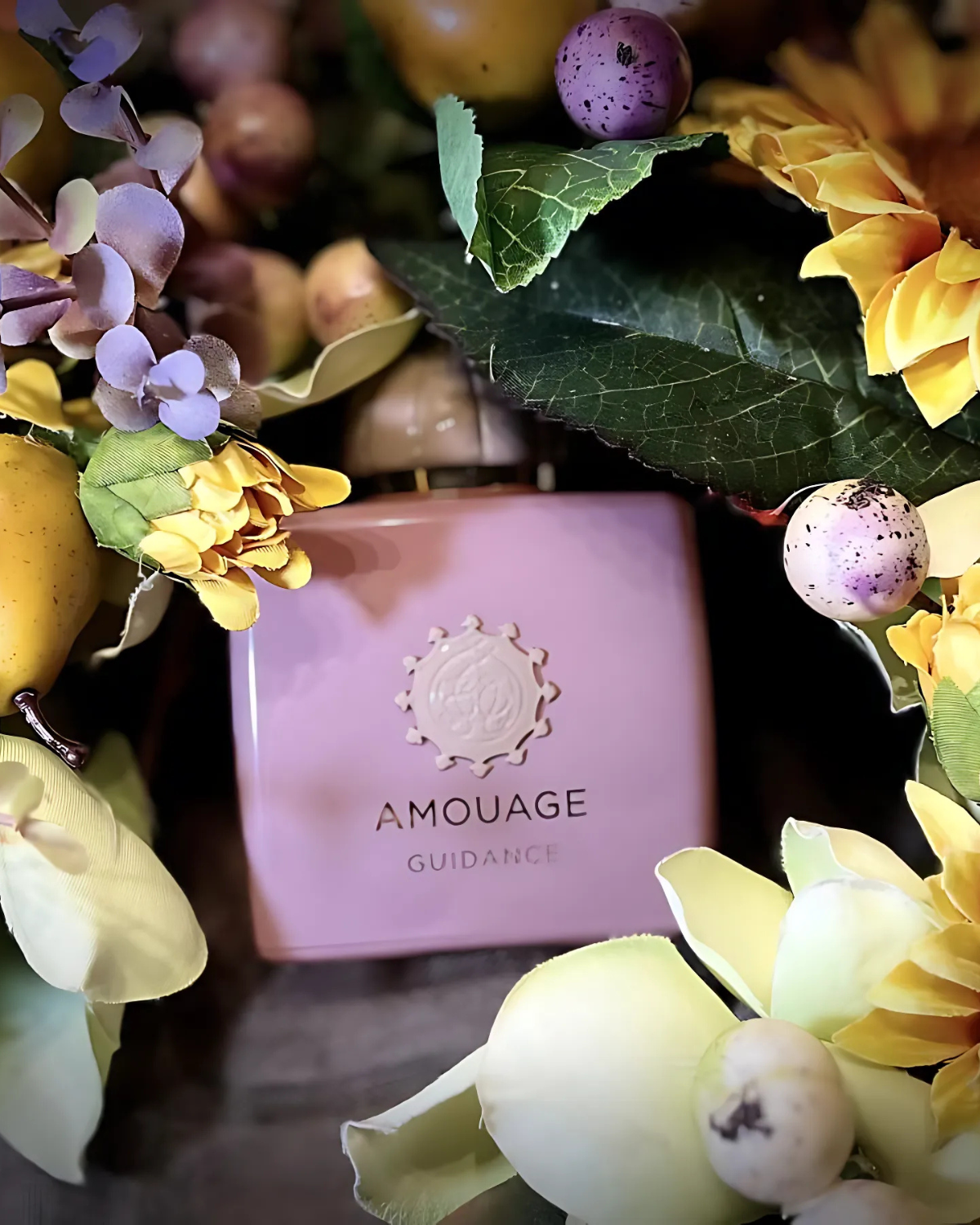 Amouage Guidance est une eau de parfum unisexe au profil floral et fruité, lancée en 2023. Elle est décrite comme une fragrance poétique et envoûtante, conçue pour une douce étreinte. Sa fragrance s'articule autour d'un mélange de poire crémeuse, d'encens et d'amande, avec un cœur floral de jasmin, de rose et d'osmanthus. Les notes de fond, composées de bois de santal, d'ambre et de vanille, créent une expérience réconfortante et élégante. Quentin Bisch est le nez derrière ce parfum.