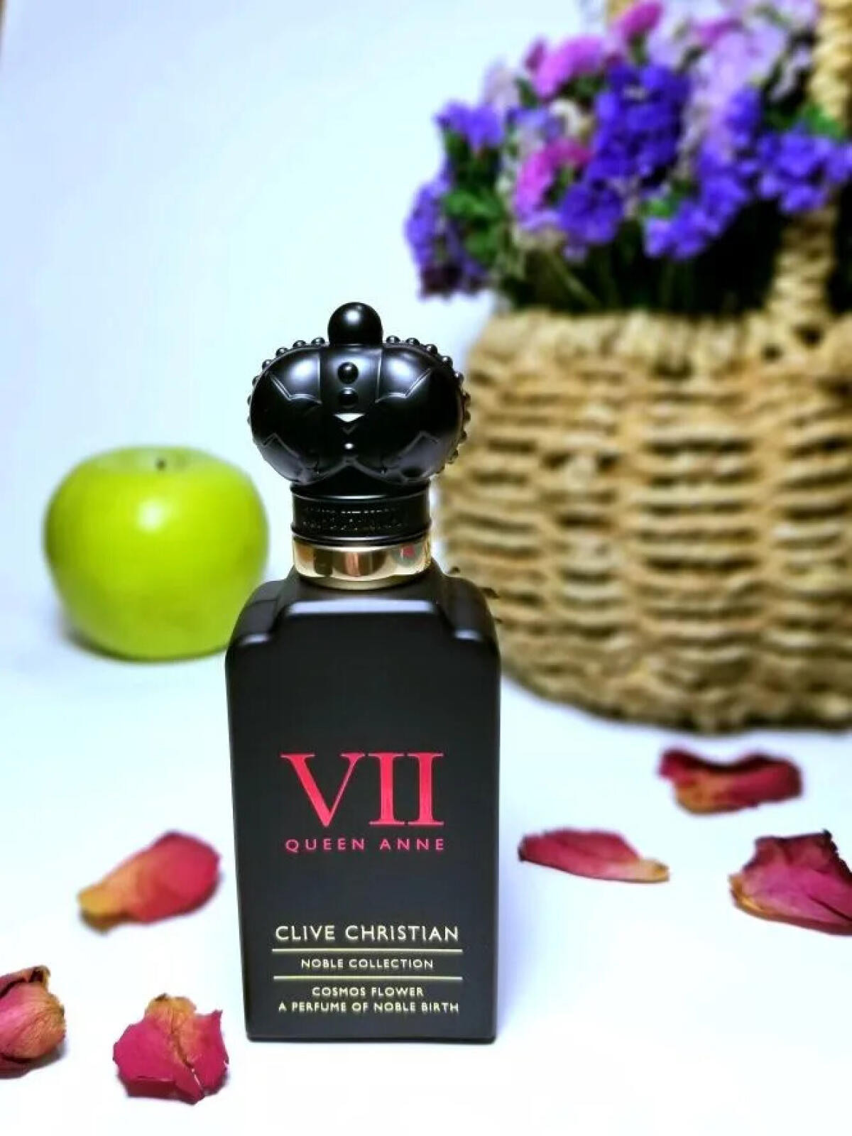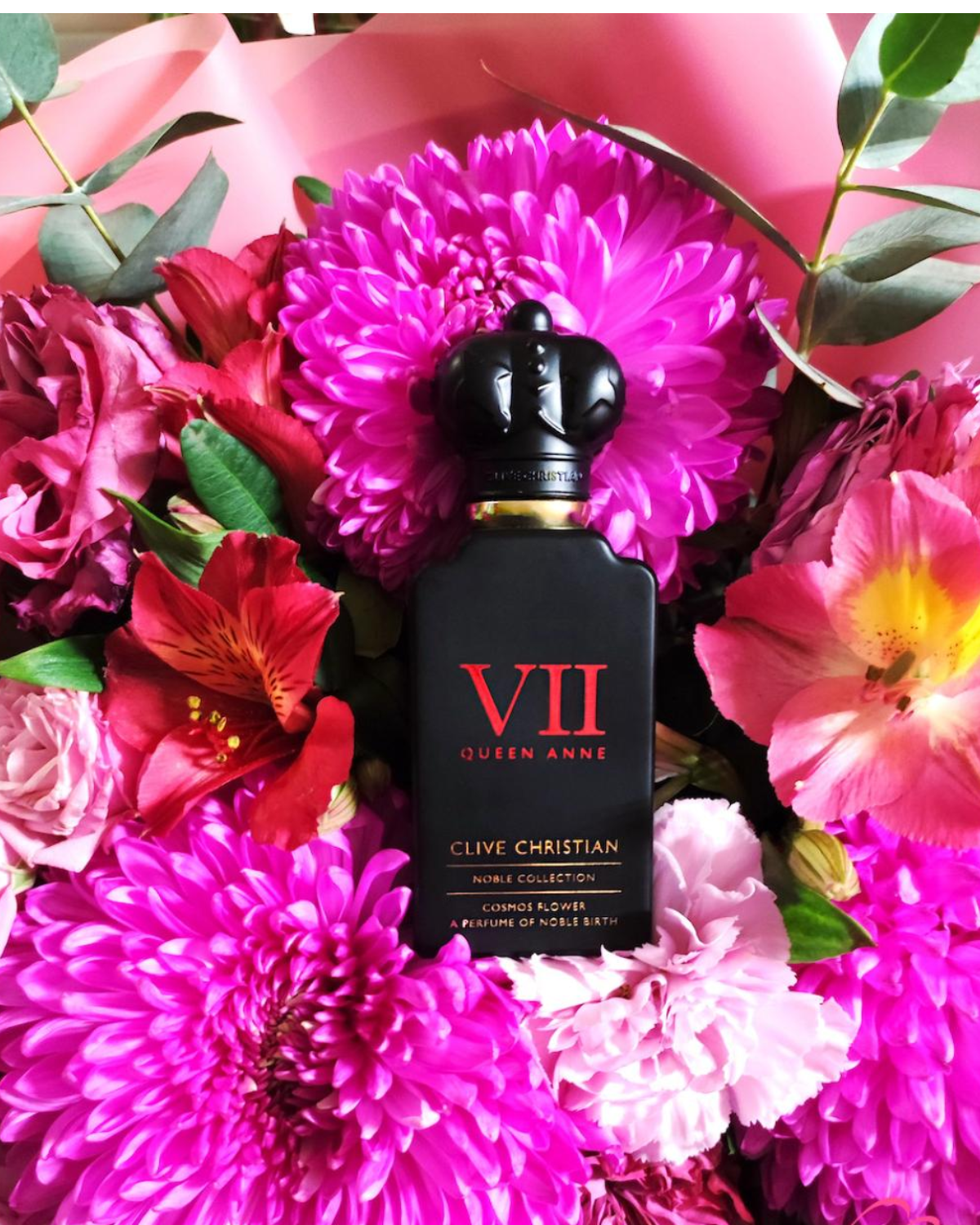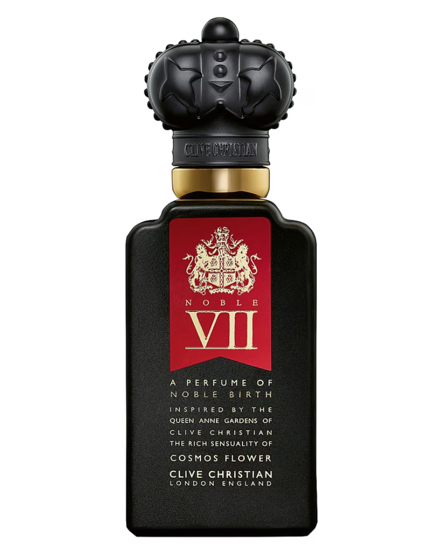 Noble VII Cosmos Flower de Clive Christian est un parfum féminin, fruité et gourmand, reconnu pour sa profondeur et sa complexité inattendues. Le parfum s'ouvre sur un mélange de mandarine juteuse, de poivre rose et de pomme, avec une touche de rhum, créant une entrée en matière lumineuse et enjouée. Le cœur dévoile un bouquet floral de jasmin, d'ylang-ylang, d'osmanthus et de violette, sublimé par la douceur de la prune. Les notes de fond, composées de cacao, de caramel, d'ambre et de benjoin, apportent une note finale chaleureuse, réconfortante et légèrement gourmande.