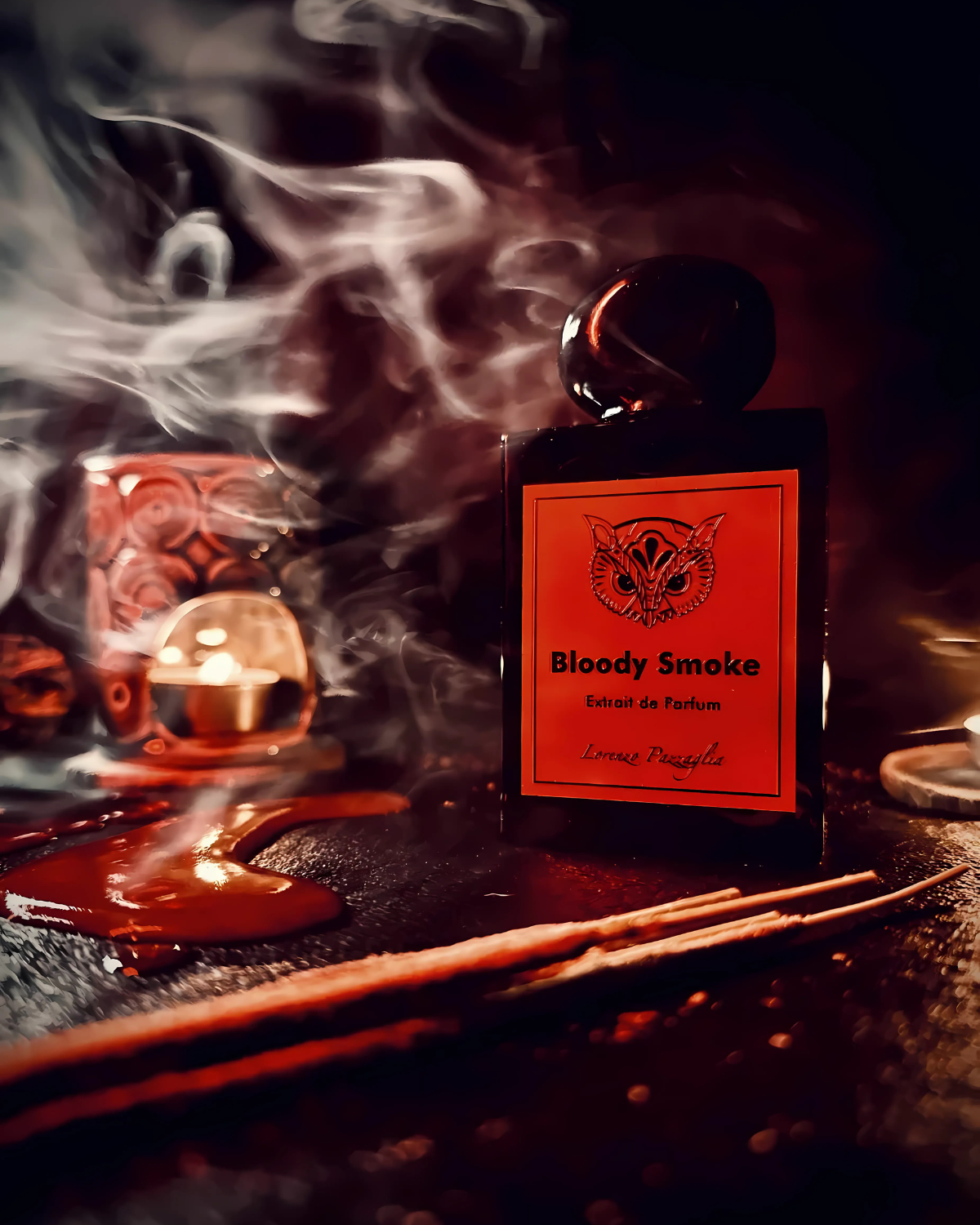 « Bloody Smoke » de Lorenzo Pazzaglia est un parfum oriental ambré unisexe, sorti en 2021. Connu pour son profil olfactif contrasté et sophistiqué, il mêle des notes fumées, résineuses et chaudes à une touche de fraîcheur et d'épices. Ce parfum évoque un sentiment de mystère et d'élégance, idéal pour les grandes occasions ou les tenues de soirée.