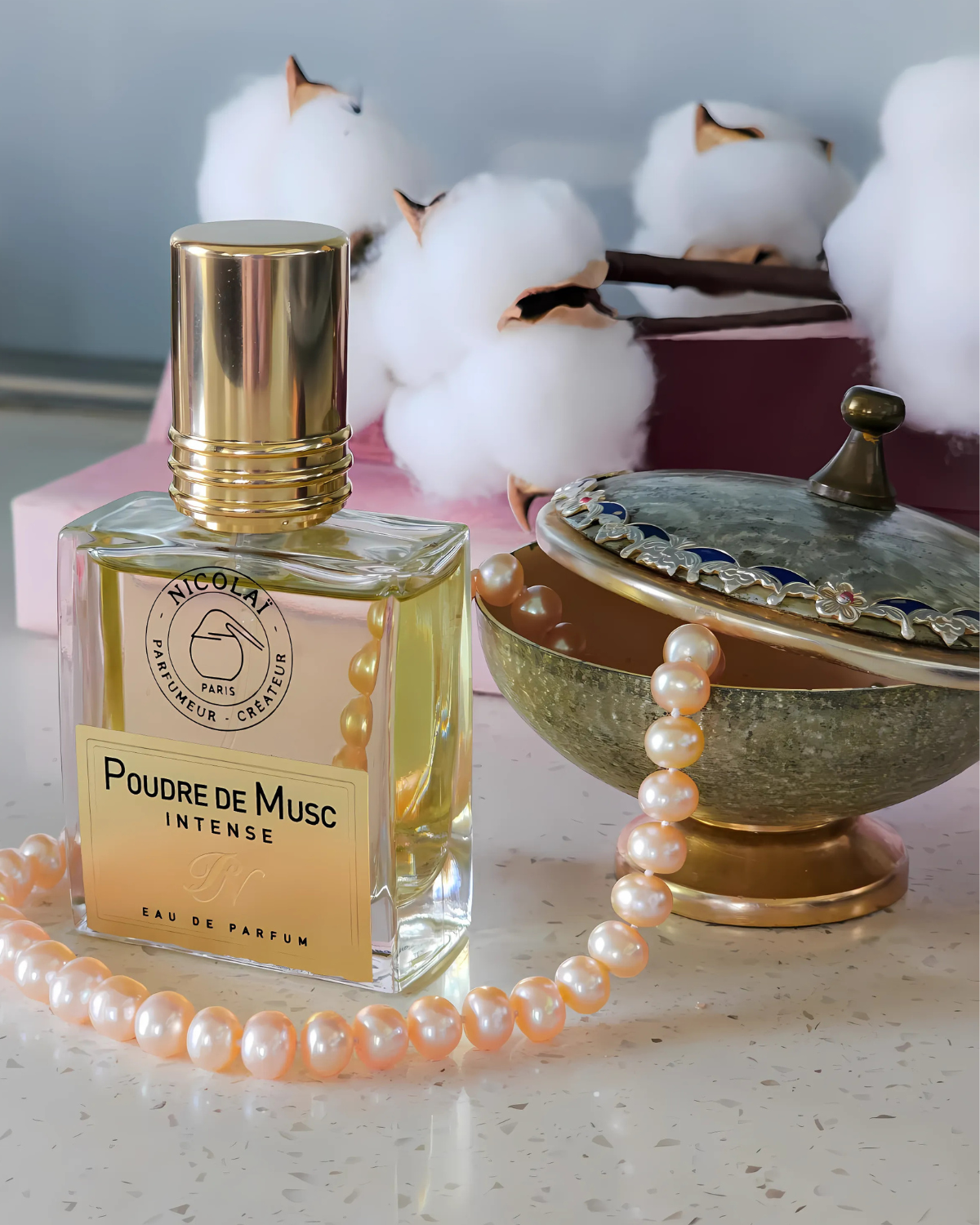 Poudre de Musc Intense de Nicolai Parfumeur Créateur est un parfum floral et aldéhydé pour homme et femme. Lancée en 2021, Poudre de Musc Intense est signée Patricia de Nicolai. Ses notes de tête sont des aldéhydes ; ses notes de cœur sont la rose, l'aubépine et la fleur d'oranger ; ses notes de fond sont le musc et le bois de santal.