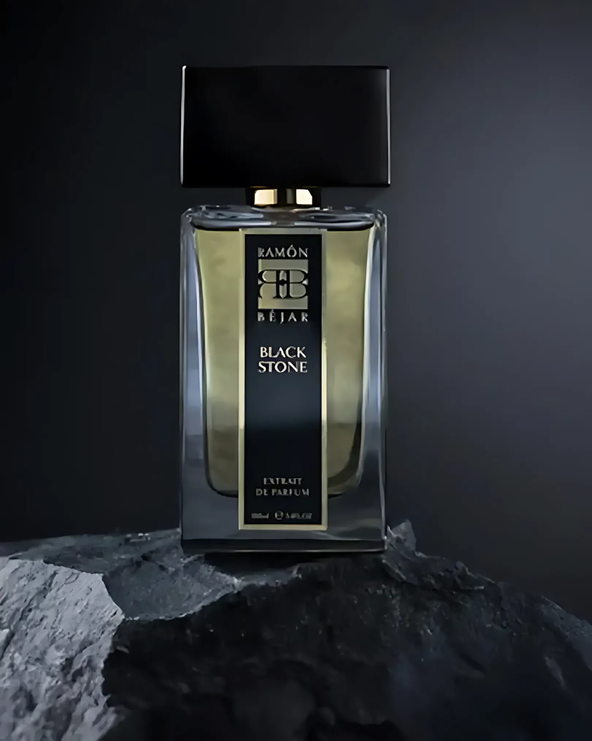 L'Extrait de Parfum Black Stone de Ramón Béjar est un parfum pour homme et femme. Il s'agit d'une nouvelle fragrance. Lancé en 2023, il se compose de notes de tête : cardamome, bergamote et notes vertes ; de notes de cœur : huile essentielle de cypriol (nagarmotha), lavande et bois de santal ; de notes de fond : musc, tonka et vétiver.