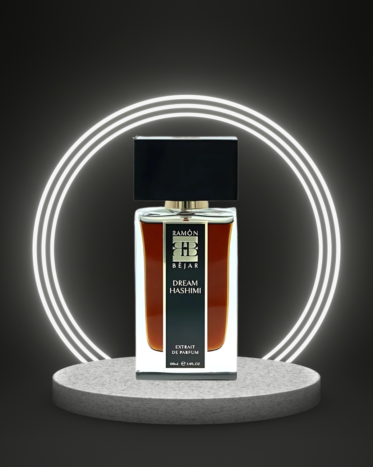 دريم هاشمي من رامون بيجار هو عطر للجنسين، يُعرف بمزيجه الفريد من عناصر العطور التقليدية والحديثة. يُوصف بأنه عطرٌ من العنبر والجلد بنفحات دخانية، يُضفي هالةً من الغموض. تبدأ رحلة العطر بنفحات عليا من نجيل الهند والبتولا والكركديه، ثم تتطور إلى قلبٍ من البنفسج وبلسم غورجوم والتبغ، وتستقر أخيرًا في قاعدة من بلسم بيرو واللابدانوم والإليمي وخشب الصندل وحبوب التونكا والزباد. إنه عطرٌ راقٍ يهدف إلى استحضار شعورٍ بالتوازن بين القوة والنعومة، مستوحى من حلمٍ حيث كشف كائنٌ مُشرقٌ عن تركيبةٍ لرائحةٍ أبدية.