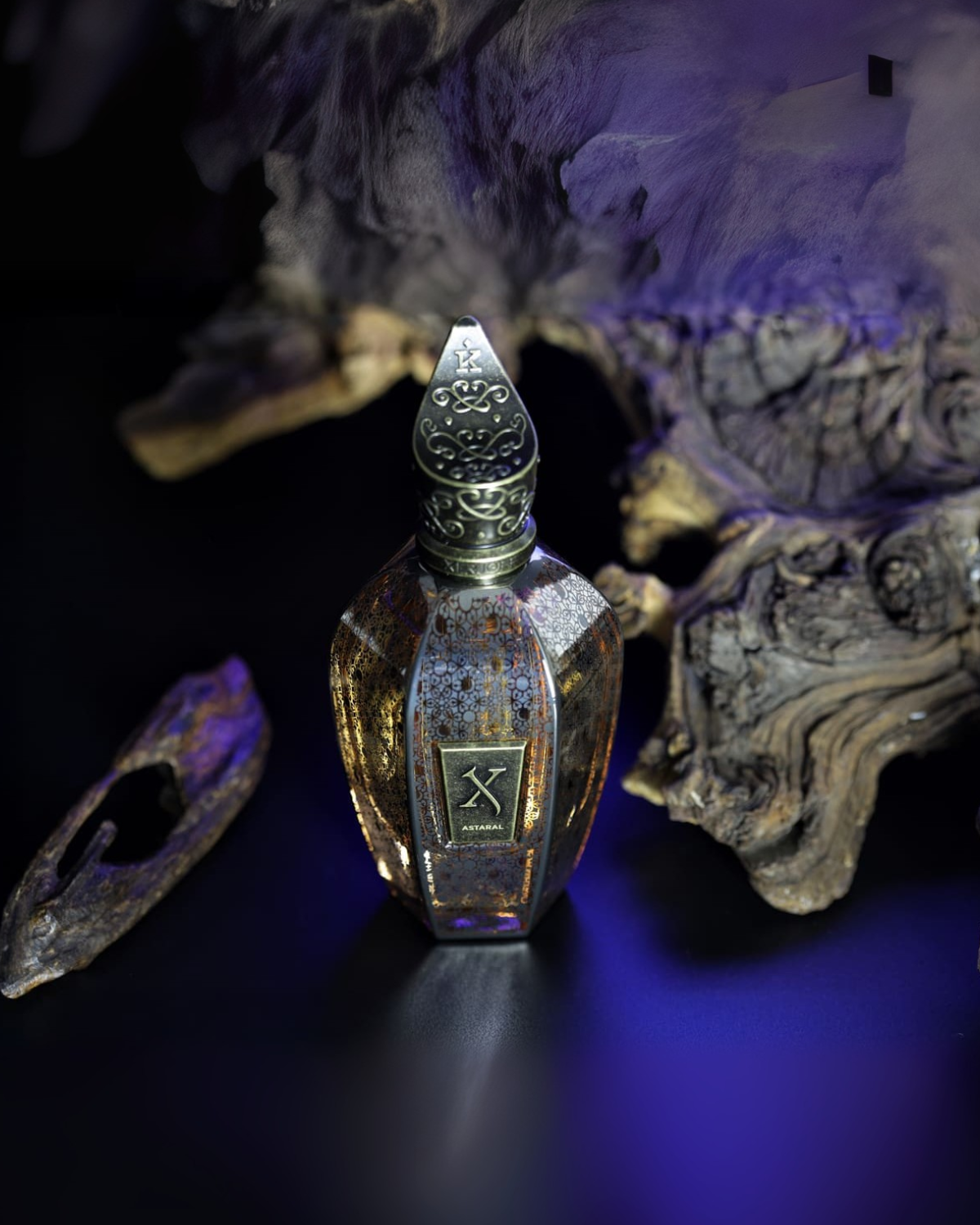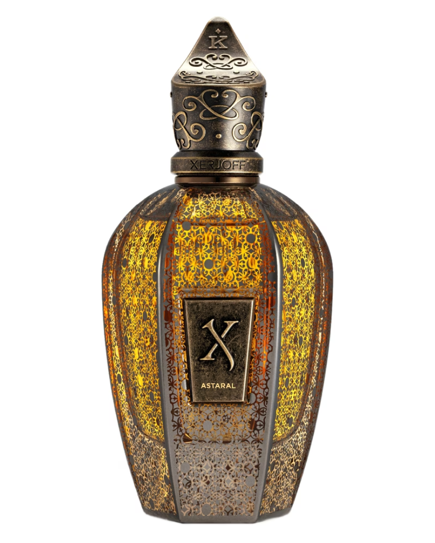 Xerjoff Astaral est un parfum oriental ambré unisexe lancé en 2023 et issu de la collection Kemi Blue. Il dévoile un mélange captivant de notes exotiques et épicées, avec notamment un accord Attar Shamama, de l'anis et du poivre rose en tête. Le cœur révèle un bouquet floral de rose, d'absolu de labdanum et de violette, tandis que les notes de fond de patchouli, de oud, d'ambre, de bois de cèdre et de musc offrent un final chaud et sensuel. Astaral est connu pour son caractère sophistiqué et élégant, décrit comme un voyage céleste au charme persistant.