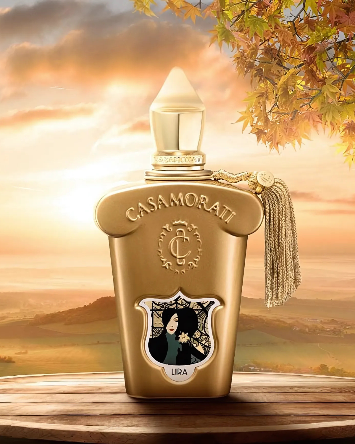 Lira de Xerjoff est un parfum gourmand aux notes envoûtantes, douces, chaudes et fraîches. Il s'ouvre sur une explosion d'orange sanguine, de bergamote et de lavande, puis évolue vers un cœur de cannelle, de réglisse et de jasmin, pour enfin s'installer sur un fond de vanille, de caramel et de musc. Ce parfum est réputé pour son mélange enivrant d'agrumes, de fleurs et d'accords gourmands, créant une expérience séduisante et mémorable.