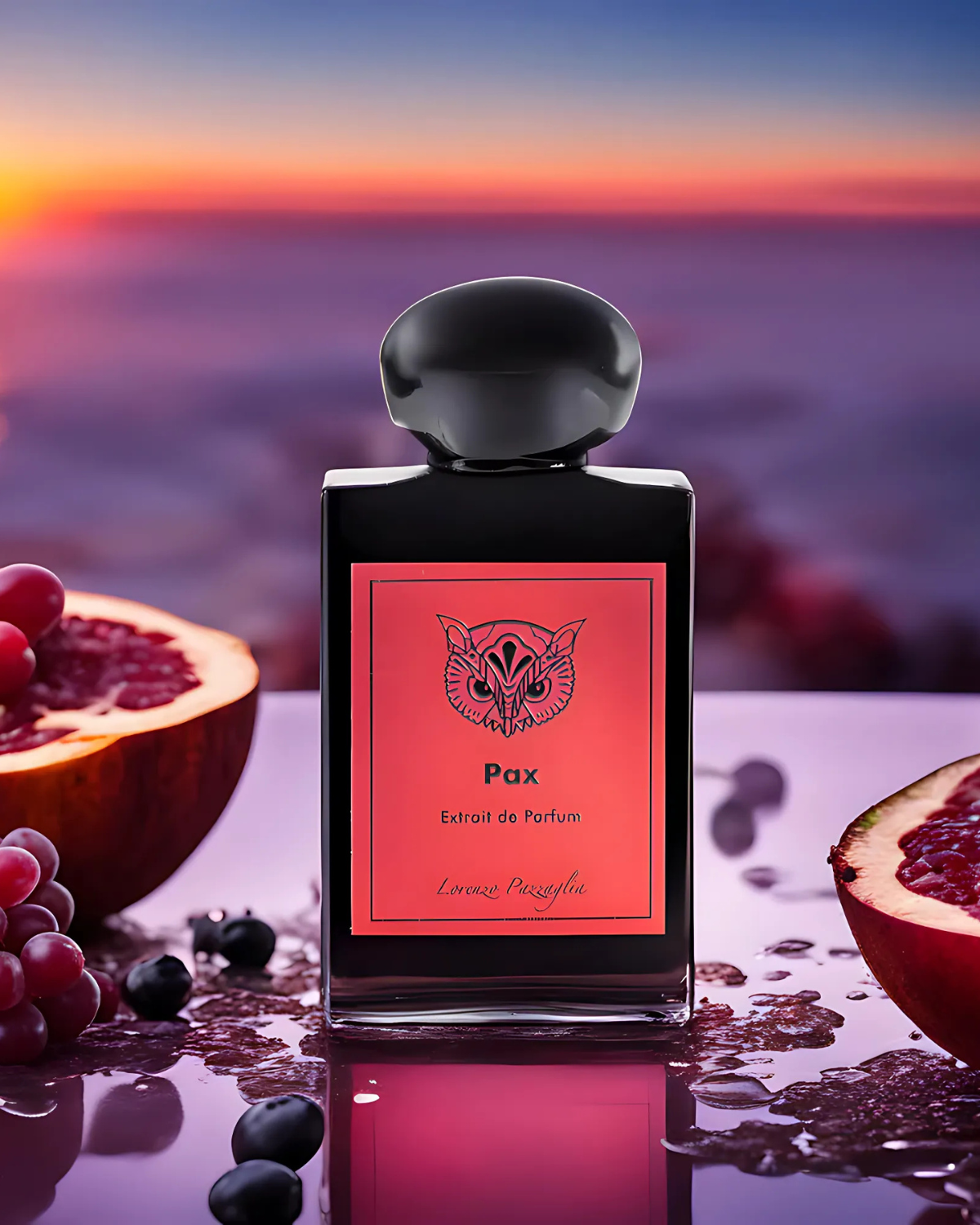 Lorenzo Pazzaglia's Pax is a unisex Extrait de Parfum that functions as an olfactory self-portrait, combining contrasting notes to represent a multifaceted personality. The fragrance opens with a mix of fresh, sparkling citrus, pear, passion fruit, grapes, and pepper. Its heart unfolds with notes of blackcurrant leaf, jasmine, magnolia, cardamom, and incense, while the sophisticated and enduring base features ambergris, vanilla, oud, leather, and white musk