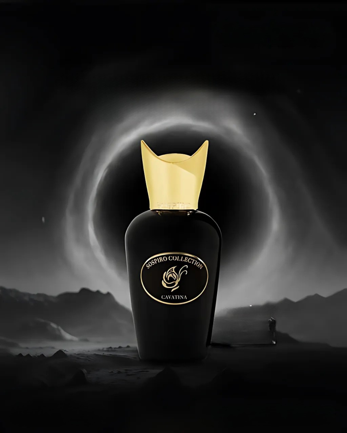 Sospiro's Cavatina is a unisex floral fruity fragrance launched in 2025, described as a luminous and harmonious scent that captures the essence of a memorable melody. It opens with a sparkling blend of pomegranate, mandarin, and pink pepper, transitioning into a heart of freesia, jasmine, rose, magnolia, and apple, and concludes with a warm and sensual base of white musk, grenadine, and ambroxan.