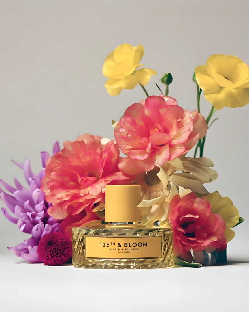 Vilhelm 125th & Bloom is a unisex, floral-woody chypre fragrance inspired by the vibrant Harlem, with notes of angelica seeds and saffron in the top, a heart of violet and Damascena rose, and a base of ebony wood and wild leather. The scent offers a unique blend of spicy, floral, and leathery-woody elements, creating a sophisticated and elegant aroma that balances the freshness of urban gardens with the depth of cultural richness
